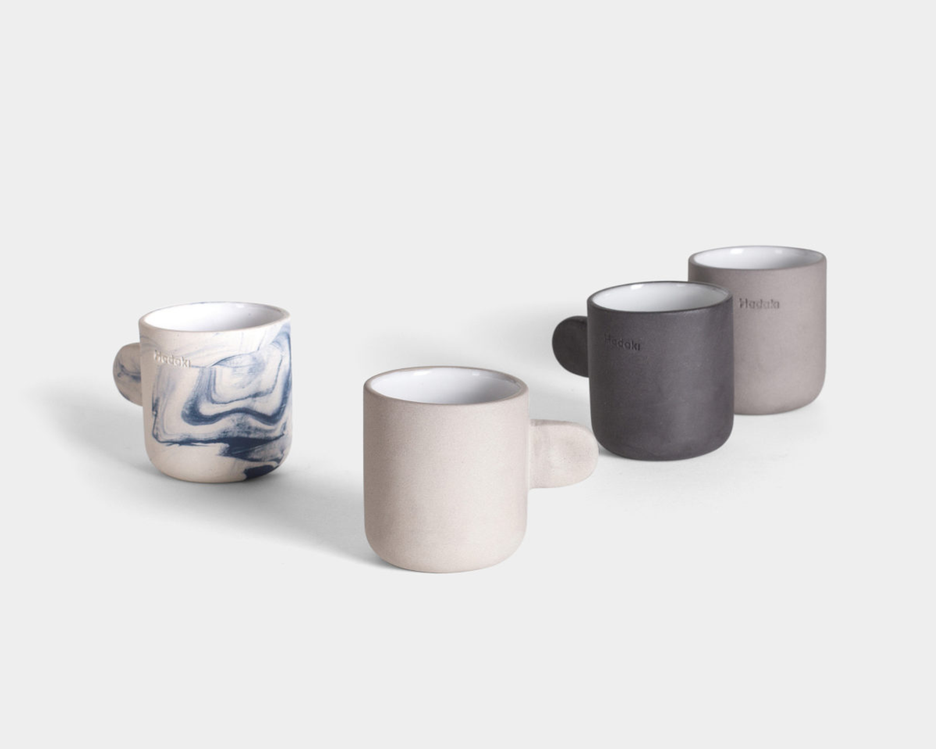 Polska ceramika, wytwarzana ręcznie w poznańskiej pracowni Hadaki. Wyroby ceramiczne tej pracowni charakteryzują się surowym stylem i dużą praktycznością. Kubek do espresso z uchem o pojemności 80 ml wykonany z kamionki, szkliwiony wewnątrz, matowy na zewnątrz.